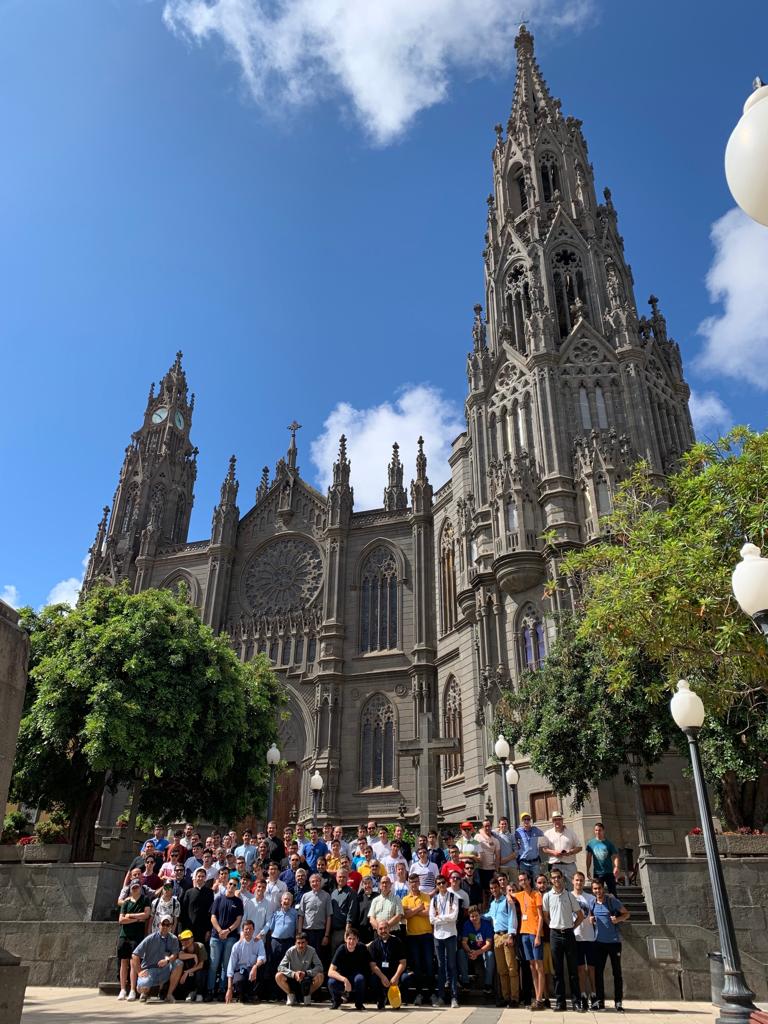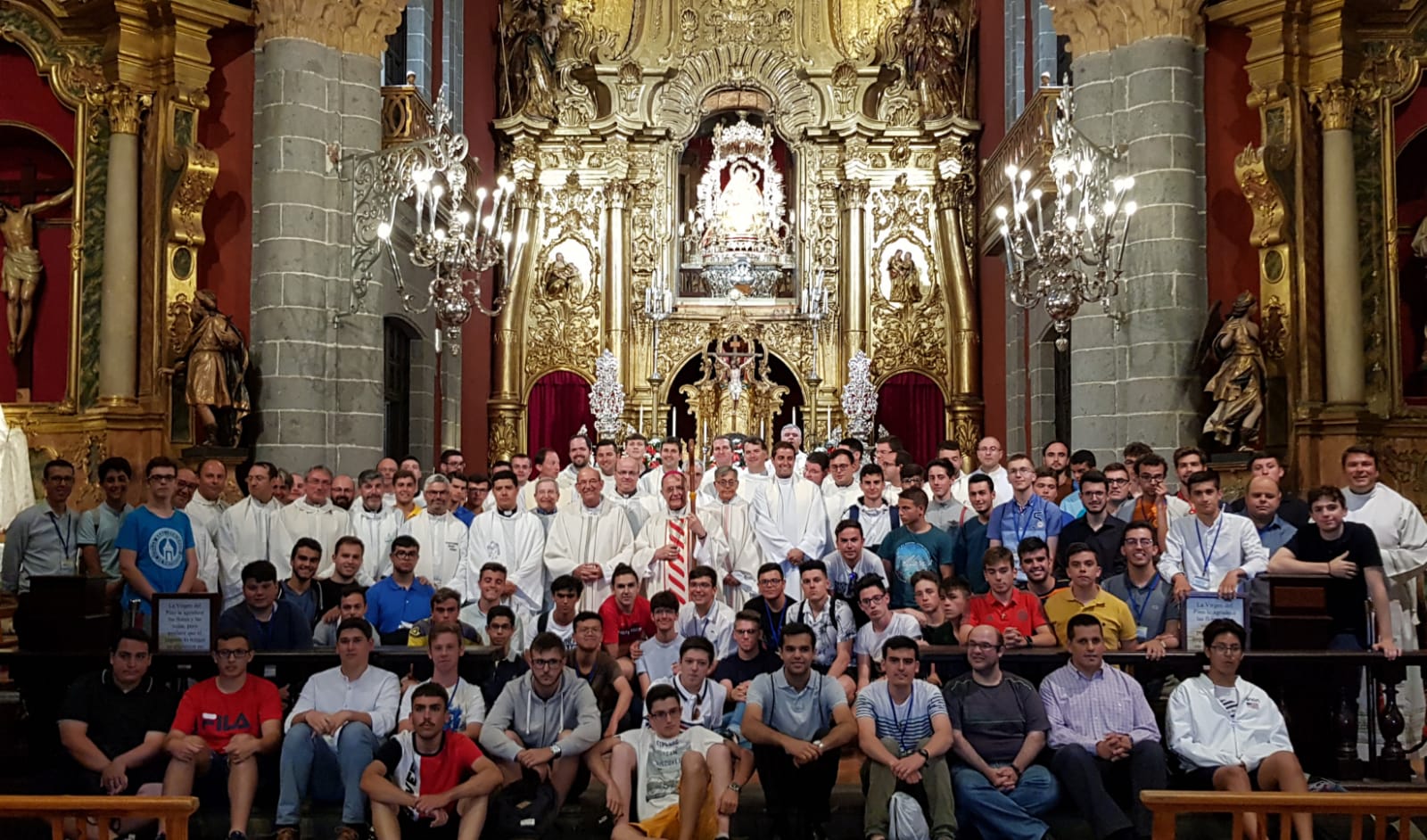 Y junto a ellos, los seminaristas del Seminario Menor en Familia y seminaristas del Mayor de Canarias. También a las muchas personas que nos han acompañado estos días con su disponibilidad, trabajo y servicio para que esta experiencia fuese única; al grupo de folclore «Buchito de Café»; a Raúl Arencibia, presentador de TVE; al personal e instalaciones del ISTIC y centro diocesano de pastoral; a los guías turísticos; a la Catedral, Museo Diocesano e Iglesias del centro histórico de Las Palmas; a los astrónomos; al grupo de lucha canaria «Adargoma» en Pedro Hidalgo; a la dirección y trabajadores del Hotel Gloria Palace de Amadores; a los compañeros sacerdotes diocesanos que se han hecho presentes a lo largo de nuestro recorrido: don Julio Sánchez, don José Lavandera, don Diego Monzón, don Julio Roldán, don Miguel Hernández, don Ricardo Miranda, don Elías Zait, don Paco García … y don Jorge Martín, cura párroco de la Basílica de Nuestra Señora del Pino en Teror, entre otros.